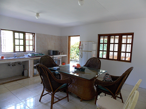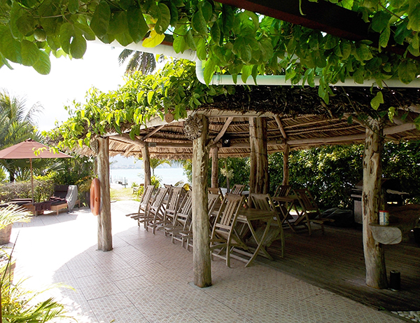 ![]() On the side, a large covering structure for eating outside being protected from the too hard sun shines. Cooking facilities on the side. |